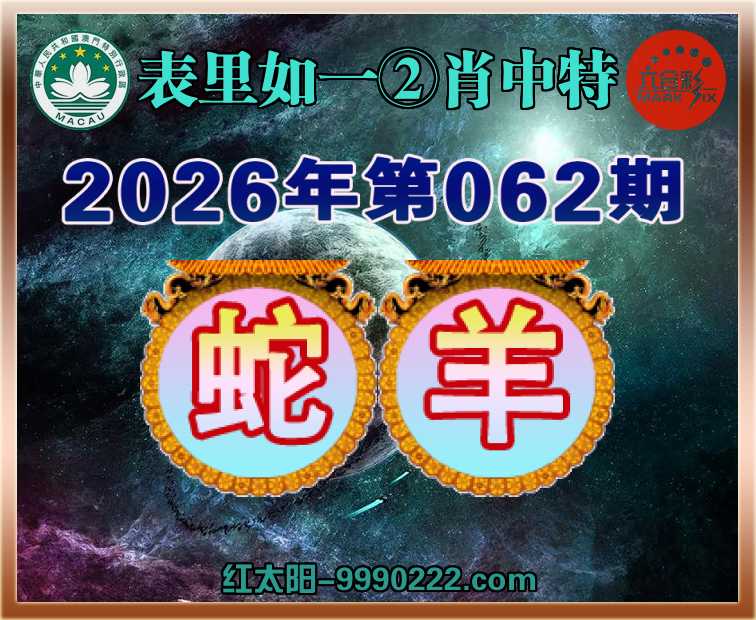 062期:『表里如一』 🍏②肖中特🍏【蛇.】开:羊24